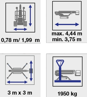 | Afstand steunpoten (uitgeklapt) | 3 m zowel in de lengte als in de breedte |