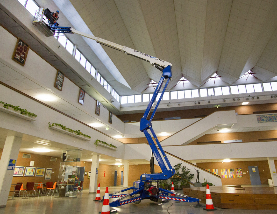 De kracht van een spinhoogwerker zit in de combinatie van wendbaarheid en stabiliteit. Waar een autohoogwerker of schaarhoogwerker veel ruimte nodig heeft, maakt deze krachtpatser zich klein om op de werkplek te komen, en groot als het werk begint.